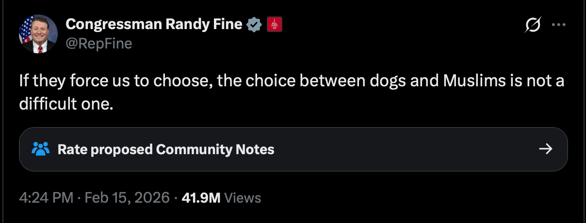 By the way, I am not a Fine fan. I have zero reason to defend his lack of Shakespearean prose in his X post, nor does it matter. Everyone knows what he’s talking about: a violent, colonizing culture demanding accommodation of their preferences over that of Americans and man’s best friends. We are not trading our culture for such a culture as that. Because there is no debate, bigot baiters are going to bait.