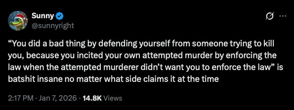 Ro Kanna is one of the first Congressional members calling for the ICE agent to be arrested. We aren’t going to endure another year of leftist riots. If this agent is arrested for defending himself against a violent broad who disliked the law he was there to enforce, I promise you it won’t be leftists in the streets this time — especially if Democrat politicians who stole our taxpayer dollars through Somali scams walk free.