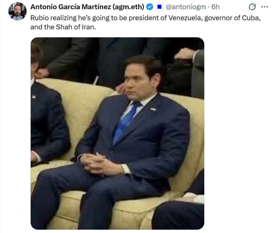 When asked who was in charge in Venezuela now, Trump said that a group, mostly composed of the people behind him (including Rubio and Hegseth), was in charge for the most part. He said Rubio had been in talks with Maduro’s VP, Delcy Rodriguez. Trump made it sound like Ms. Rodriguez was cooperating with Rubio and American efforts to “Make Venezuela Great Again.” However, Delcy had other thoughts.